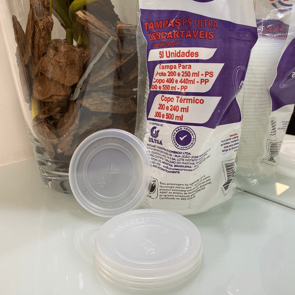 Tampa para Potes PS 200/250ml e Copos PP 400/440/500/550ml e para Copo Térmico de 200/240/300/500ml sem furo Ultra com 50 unidades